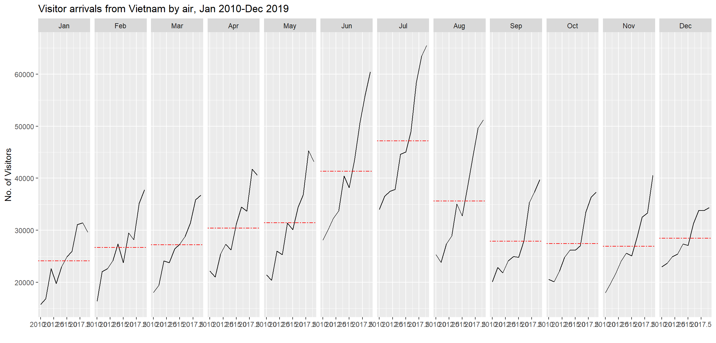 title = "Visitor arrivals from Vietnam by air, Jan 2010-Dec 2019") +