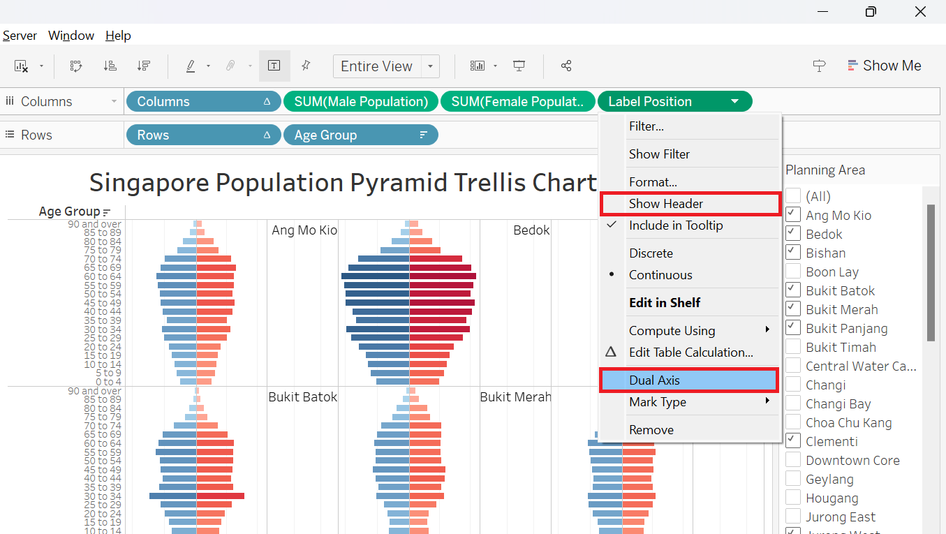| 6 | Right Click on “Label Position”, uncheck Show Header and choose Dual Axis | ![]() |