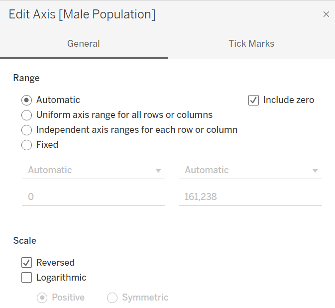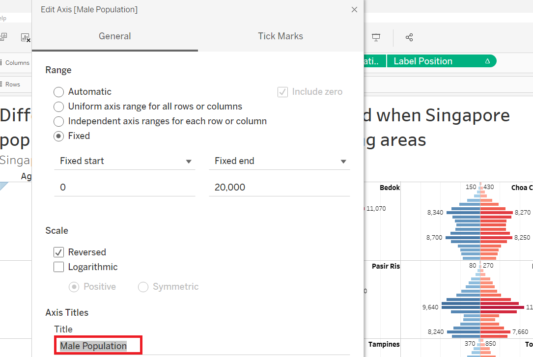 | 4 | Click on Reversed. This will reverse the “Male Population” axis to be in the middle (same as Female Population axis) | ![]() |