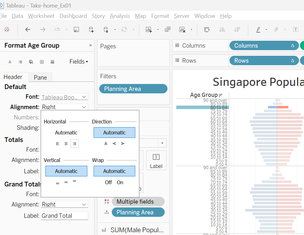 | 16 | Choose Right alignment and reduce Font to 7. This will improve the readability of the Age Group axis labels | ![]() |