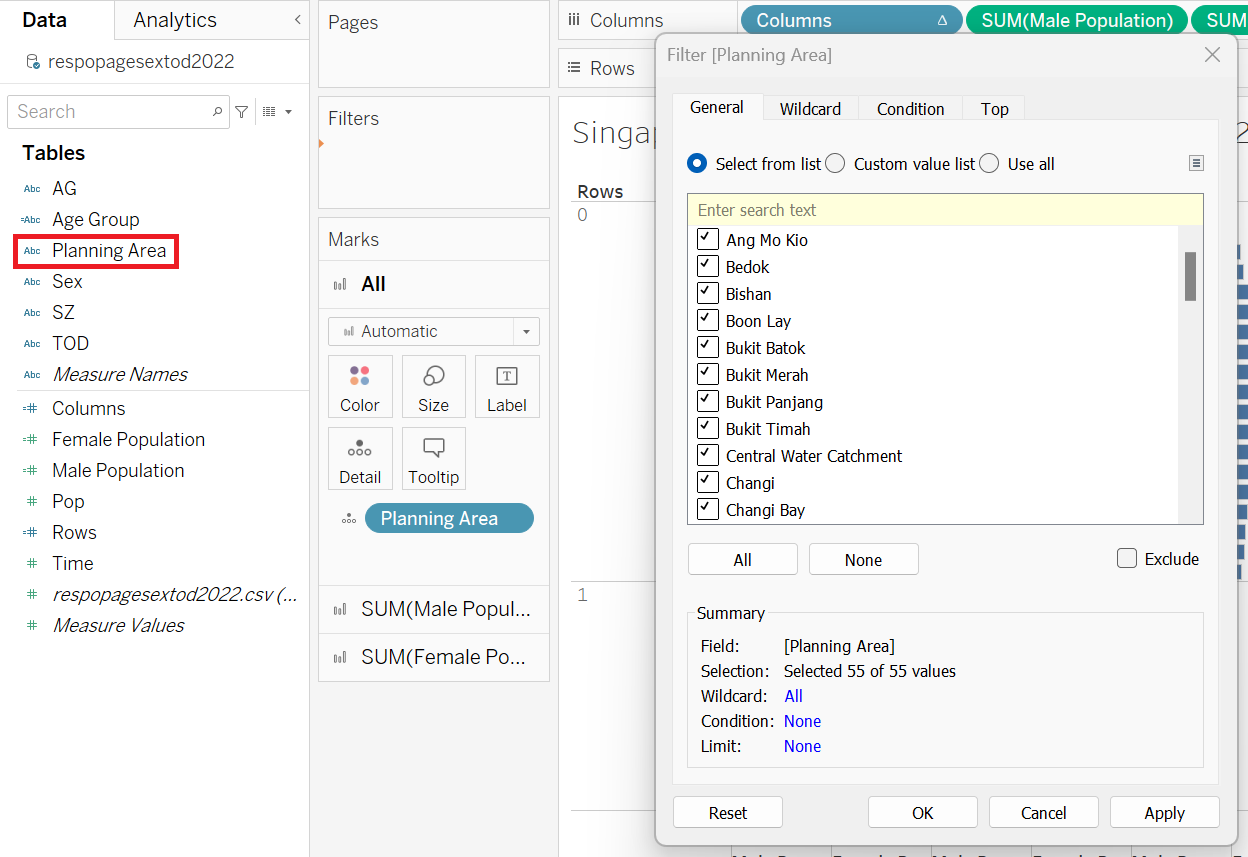 | 8 | Drag “Planning Area” to filter and click OK | ![]() |