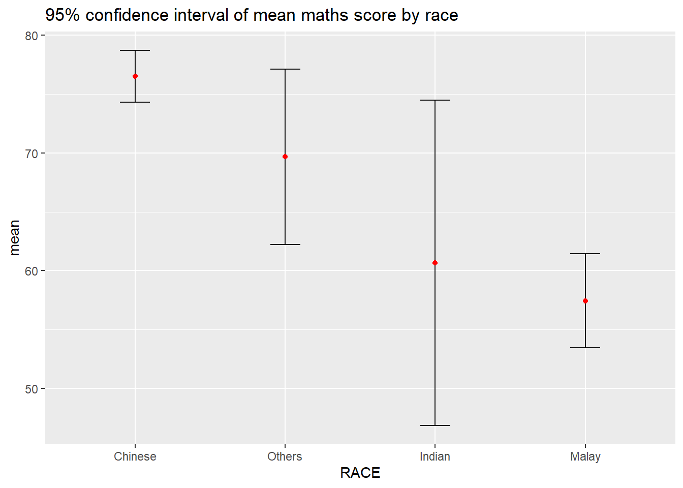 pacman::p_load(tidyverse, plotly, crosstalk, DT, ggdist, gganimate)4.2 Visualizing uncertainty of point estimates using ggplot2