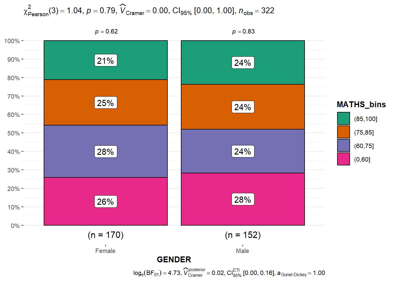 breaks = c(0, 60, 75, 85, 100)))ggbarstats(